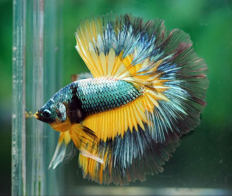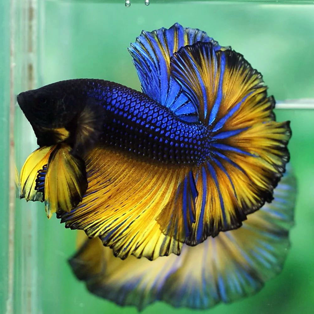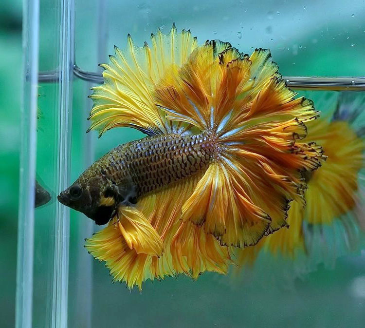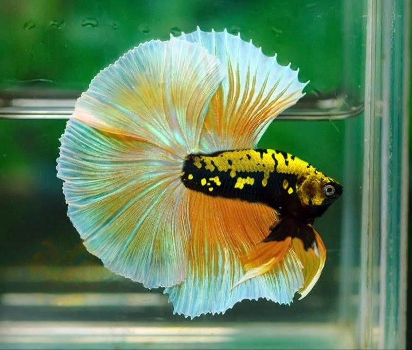 Chính sự kết hợp độc đáo này tạo nên hiệu ứng thị giác cuốn hút, khiến cá betta Mustard Gas trở thành “ngôi sao” trong hồ cá cảnh.