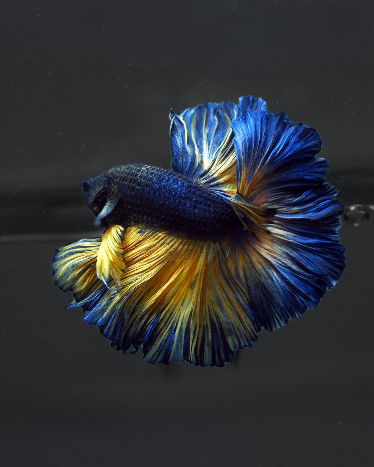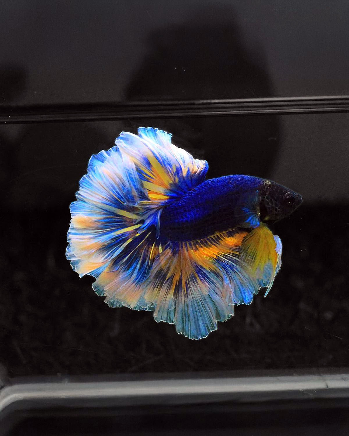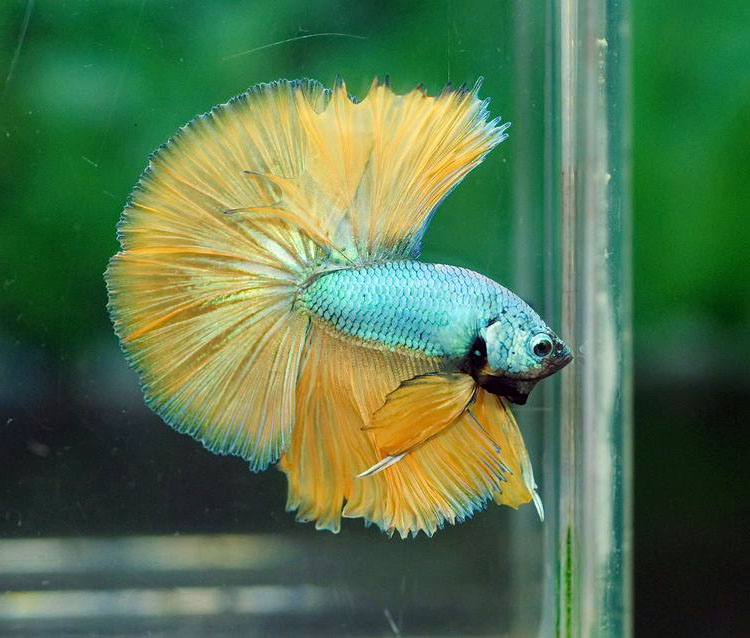 Không chỉ đẹp về màu sắc, cá betta Mustard Gas còn sở hữu dáng bơi oai vệ, vây tung xòe như những cánh lụa. Mỗi chuyển động của chúng đều mang cảm giác vừa uy lực, vừa mềm mại, khó cưỡng ánh nhìn.
