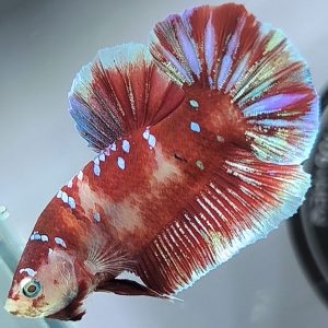 Chỉ cần nghe tên thôi là đã đủ để cảm nhận sự sang chảnh và thanh lịch hiếm có của giống cá xiêm crowntail. Phần đuôi và vây cá được cấu tạo siêu sắc sảo, làm liên tưởng đến chiếc vương miện cao quý của tầng lớp quý tộc. Cá được tô điểm bởi các gam màu nóng và rực sáng như đỏ, cam vàng,… Chỉ cần đặt chân trên cuộc đua, cá xiêm crowntail sẽ không chịu thua bất kỳ ai bởi vẻ đẹp lộng lẫy của mình.